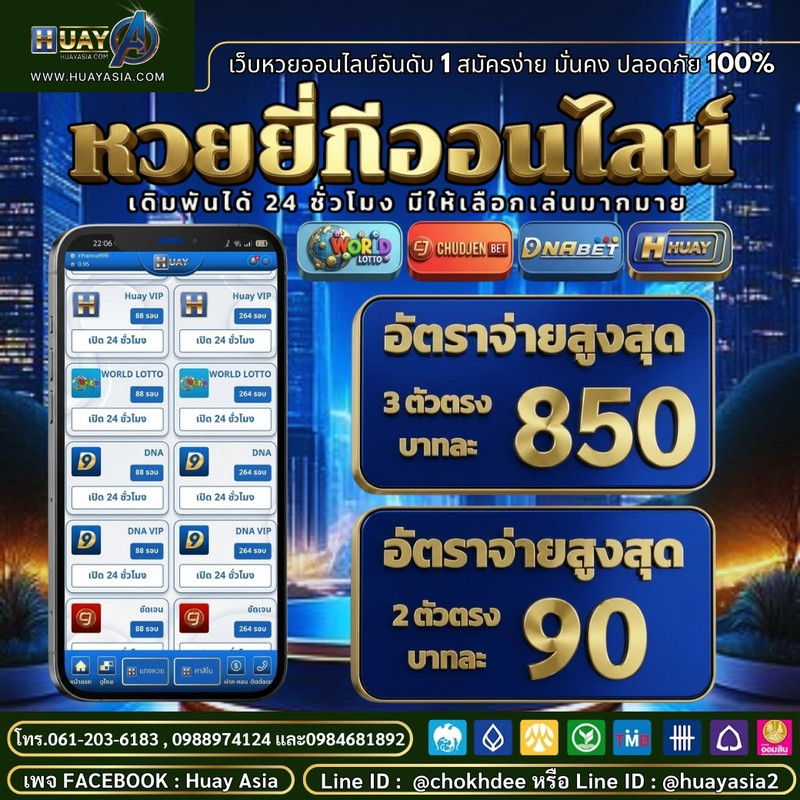ทางเลือกใหม่ของคนรักการเสี่ยงโชค HUAYASIA บริการครบวงจร ระบบออโต้ ใช้ง่าย ปลอดภัย